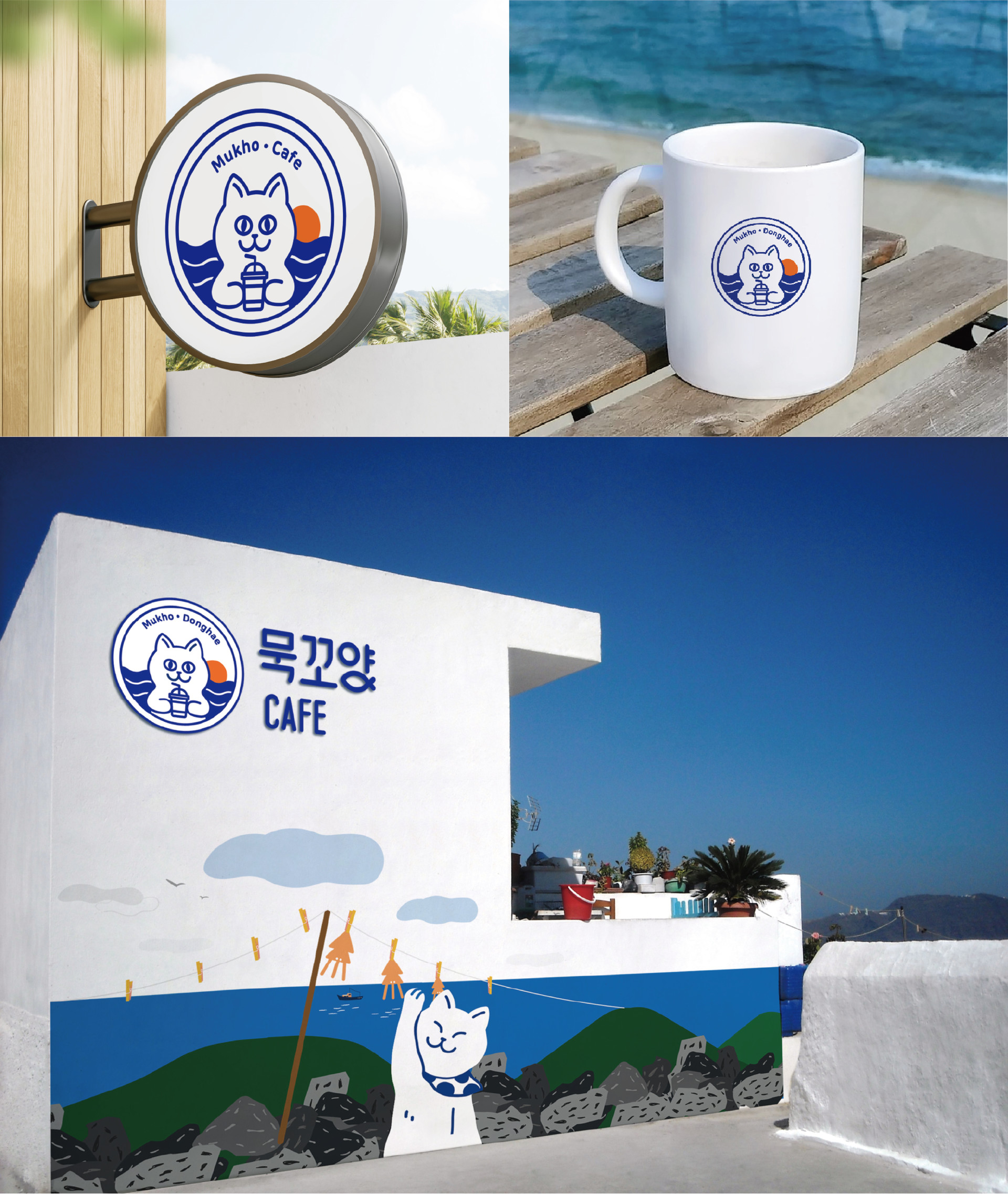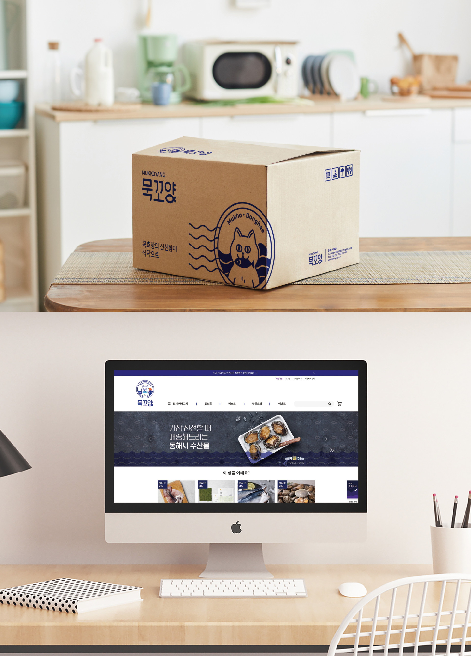 동해시청의 공동 수산물 브랜드 묵꼬양입니다. 과거 돈을 물고 다니는 개가 있을 정도로 번영했던 스토리가 있는 묵호항을 신선한 생선을 물고 있는 묵꼬양 고양이로 재미있게 개발하였습니다. 엠블럼 형태의 심볼로 동해시에서 인증하는 제품임을 나타내었으며 향후 지역 공동 이용시설인 묵꼬양 카페로도 브랜드를 사용할 예정입니다.